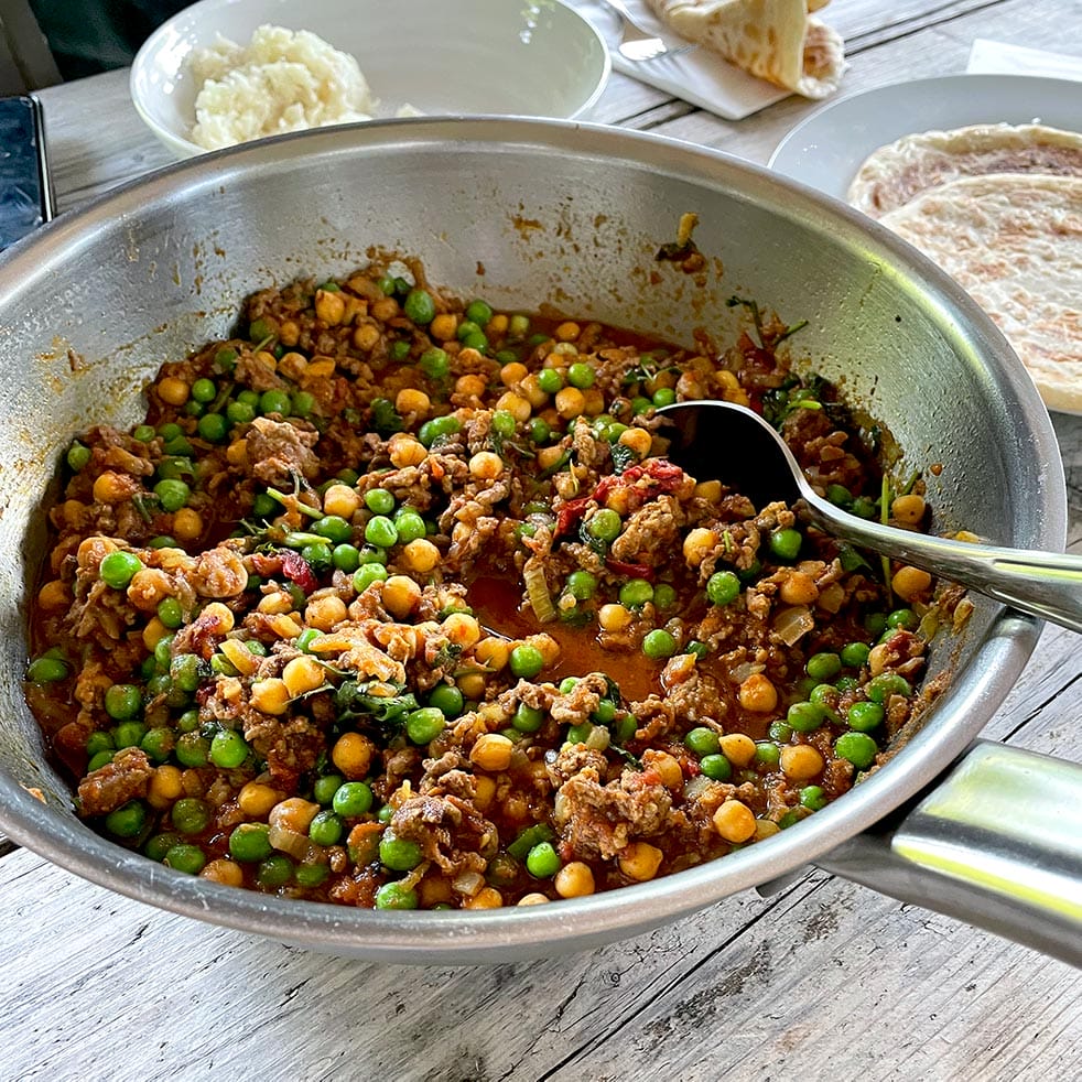 A dish that in India would be made with minced goat, you can make it with lamb or beef. One of our supper club guests many years ago shared his recipe with me, I have tweaked it a little. Don’t be put off by the long list of ingredients, you probably have most of the spices in your store cupboard. As with all my curry recipes, you can make it as hot or mild as you like, I always go down the hot route.