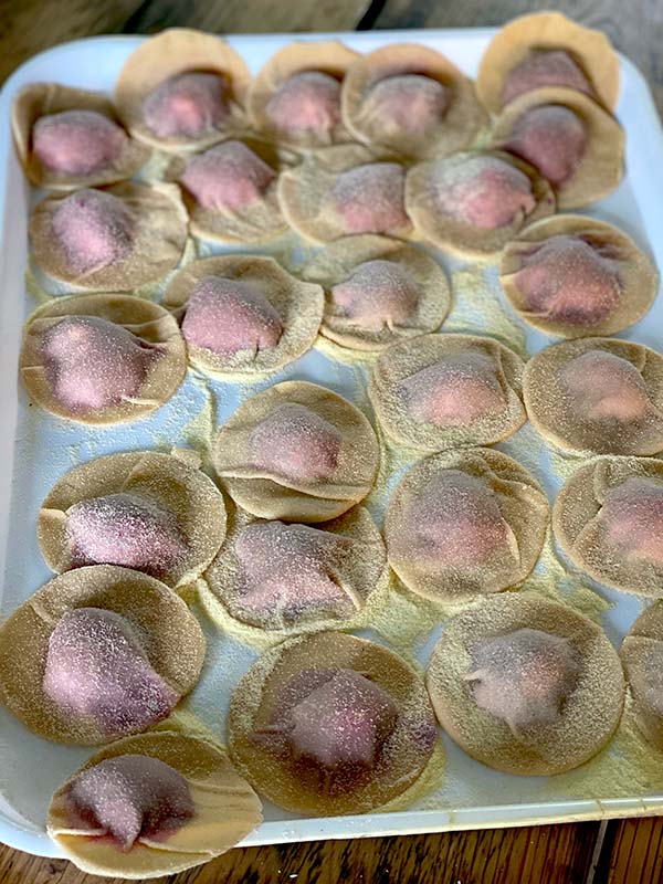 Best to make the filling the day before or at least with enough time to baked the beetroot and totally cool the filling before assembling the ravioli.