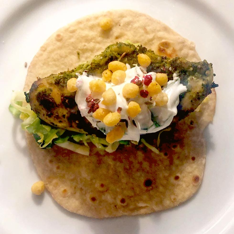 - When you're ready to cook, heat your grill to hot. Line a tray with foil and spread your marinated fillets. Grill on each side for 5 - 6 minutes or until cooked through.Serve with cabbage salad on a roti with some raita or on its own with some rice
