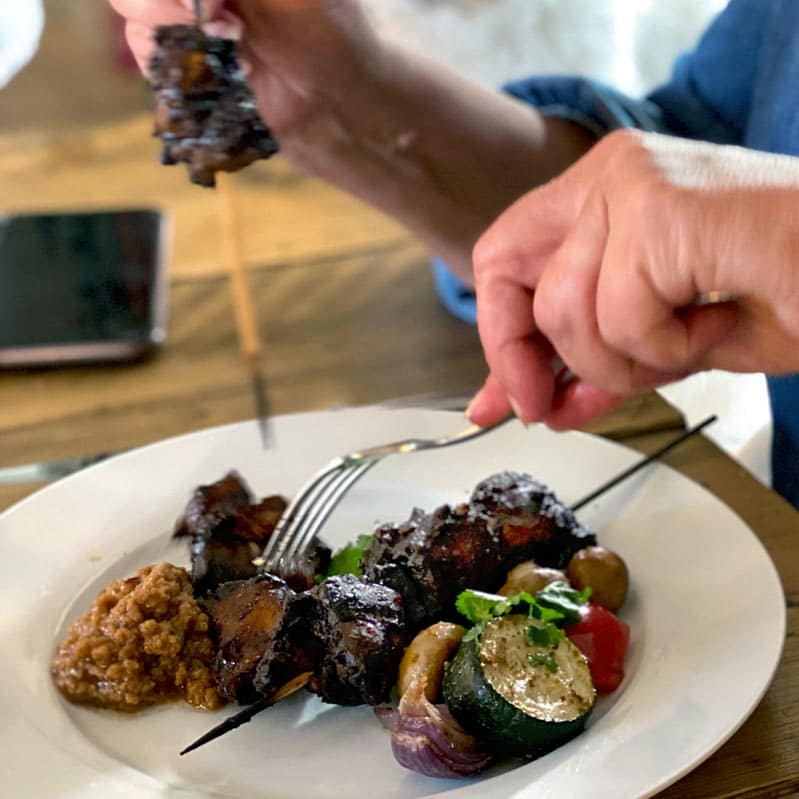 - Put all the ingredients for the satay sauce apart from the lime, in a pan and gently heat. Keep stirring while it heats and when it gets to a simmer, let it cook for 2 minutes. Once cooked, remove from the heat, add a squeeze of lime and check seasoning.Serve in a sharing bowl with the chicken skewers