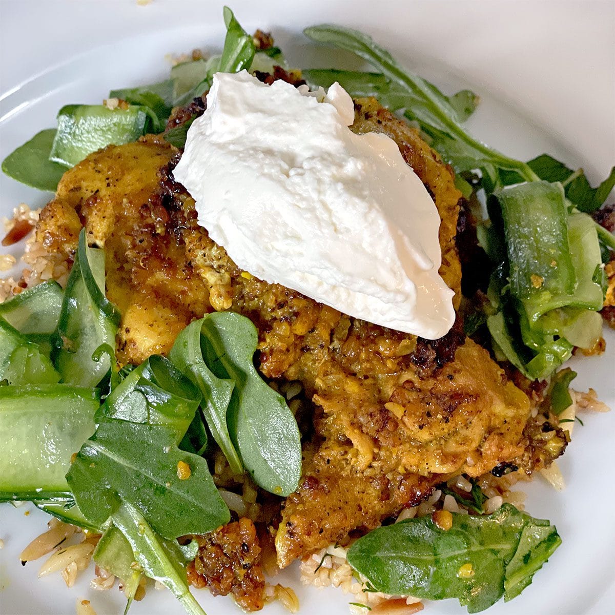 - Serve with Orzo and Bulgar wheat pilaff and cucumber, mint and rocket salad.