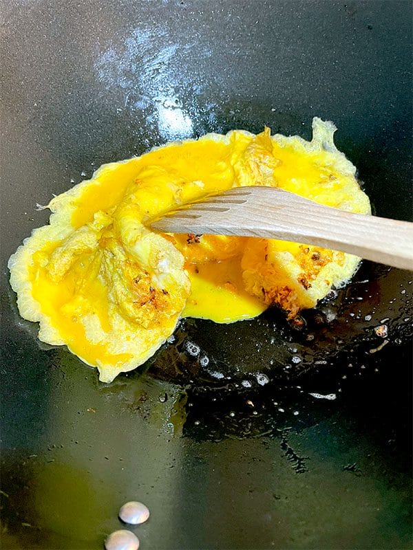 - Add vegetable oil to a wok over a high heat. Once smoking hot, add garlic cook for a minute stirring to ensure the garlic doesn't burn. Pour in the eggs, allow to cook for a minute then break up with a fork. Add sambal paste.