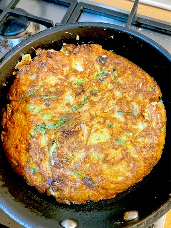- Place a plate over the frying pan and flip the pancake onto the plate. Carefully slide it back (uncooked side down) into the pan and continue to cook for 4-5 minutes. Remove to a warm plate and repeat with the second pancake.