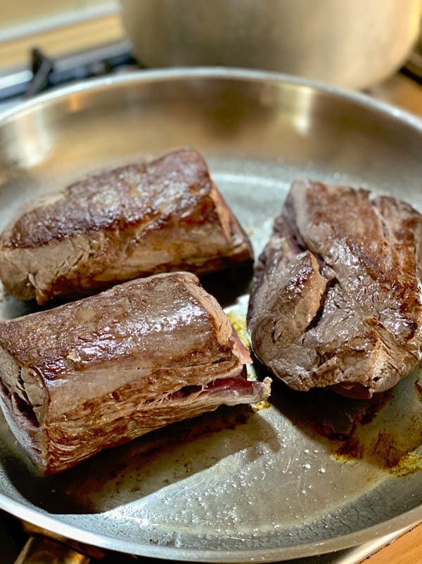 This is a very “cheffy” way of cooking beef and it never fails, something you will want to share at a special dinner with friends. It’s not a cheap dish to make.