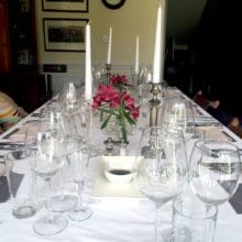 Please arrive promptly as there is one sitting. On arrival, we’ll take your coats and show you to the dining room. Your wine and soft drinks will be kept chilled until you want them; red wine is allowed to breathe on your table. We provide cold, filtered still water.